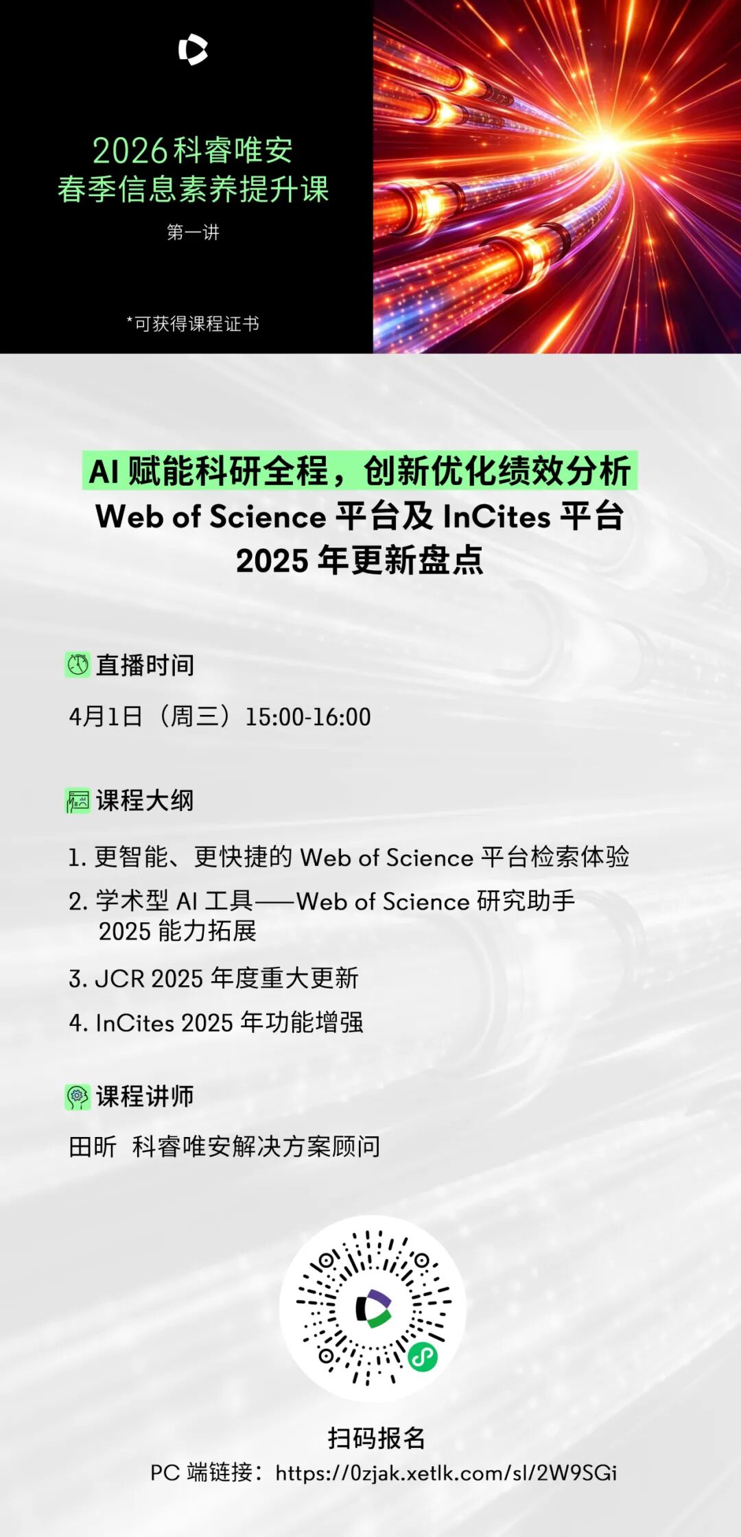 直播课程 | AI 赋能科研全程,创新优化绩效分析,Web of Science平台及InCites平台2025年更新盘点