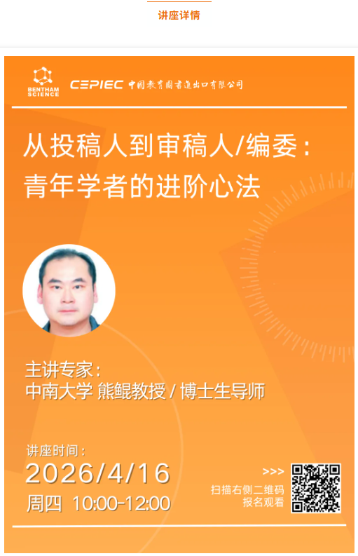 在线讲座|从投稿人到审稿人/编委:青年学者的进阶心法